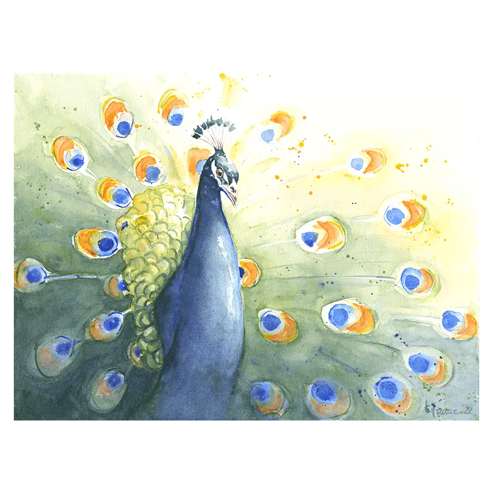 Das Originalbild Stolzer Pfau hat eine Größe von ca. 48x35cm